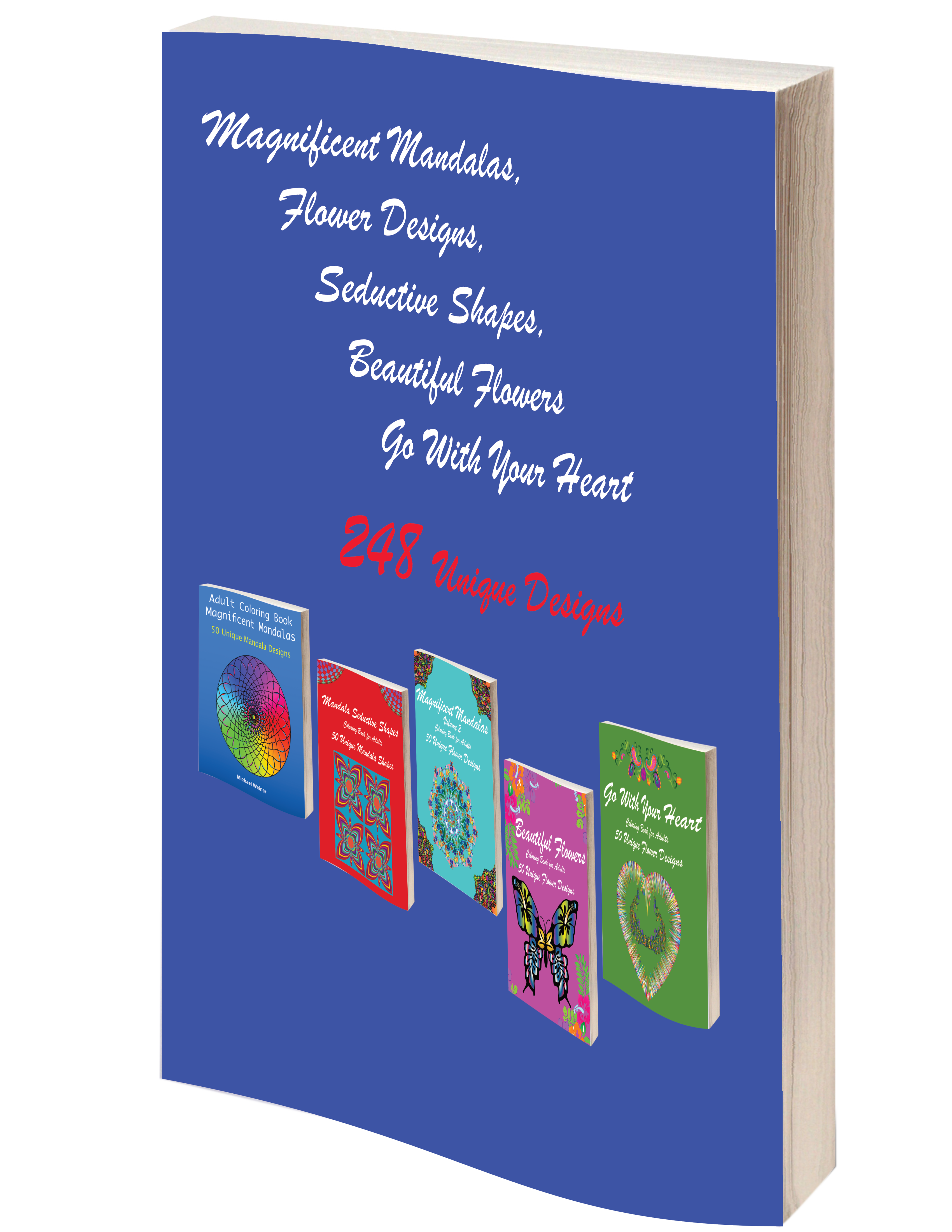 5 Book Set Magnificent Mandalas #1, Magnificent Mandalas #2, Go With Your Heart, Flowers Coloring Book Seductive Shapes & Beautiful Flowers